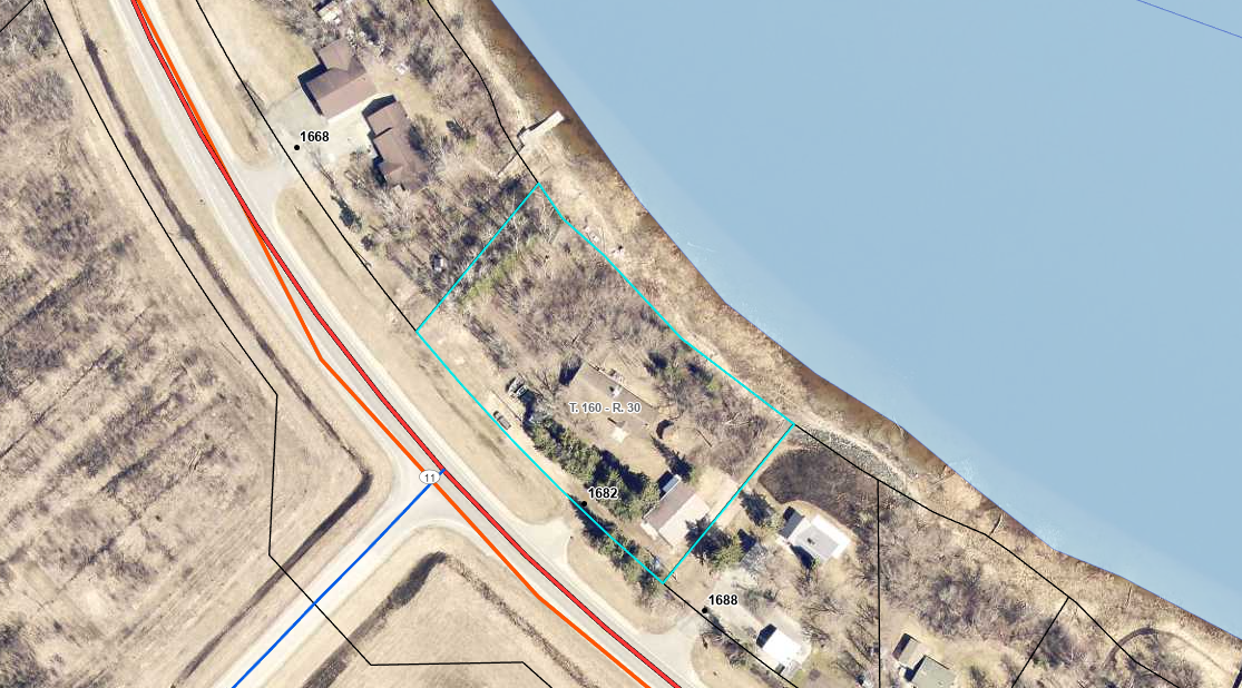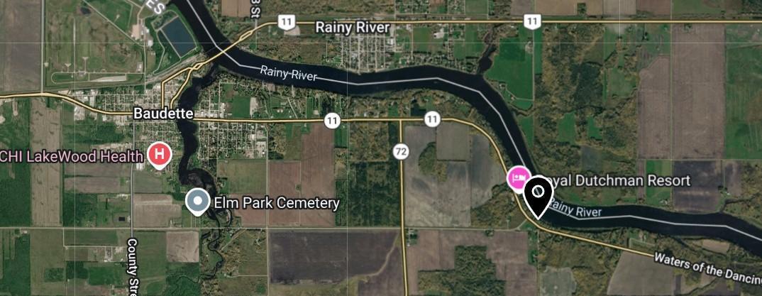 Directions: From Baudette 1 miles east of Baudette, look for North Border Realty sign.