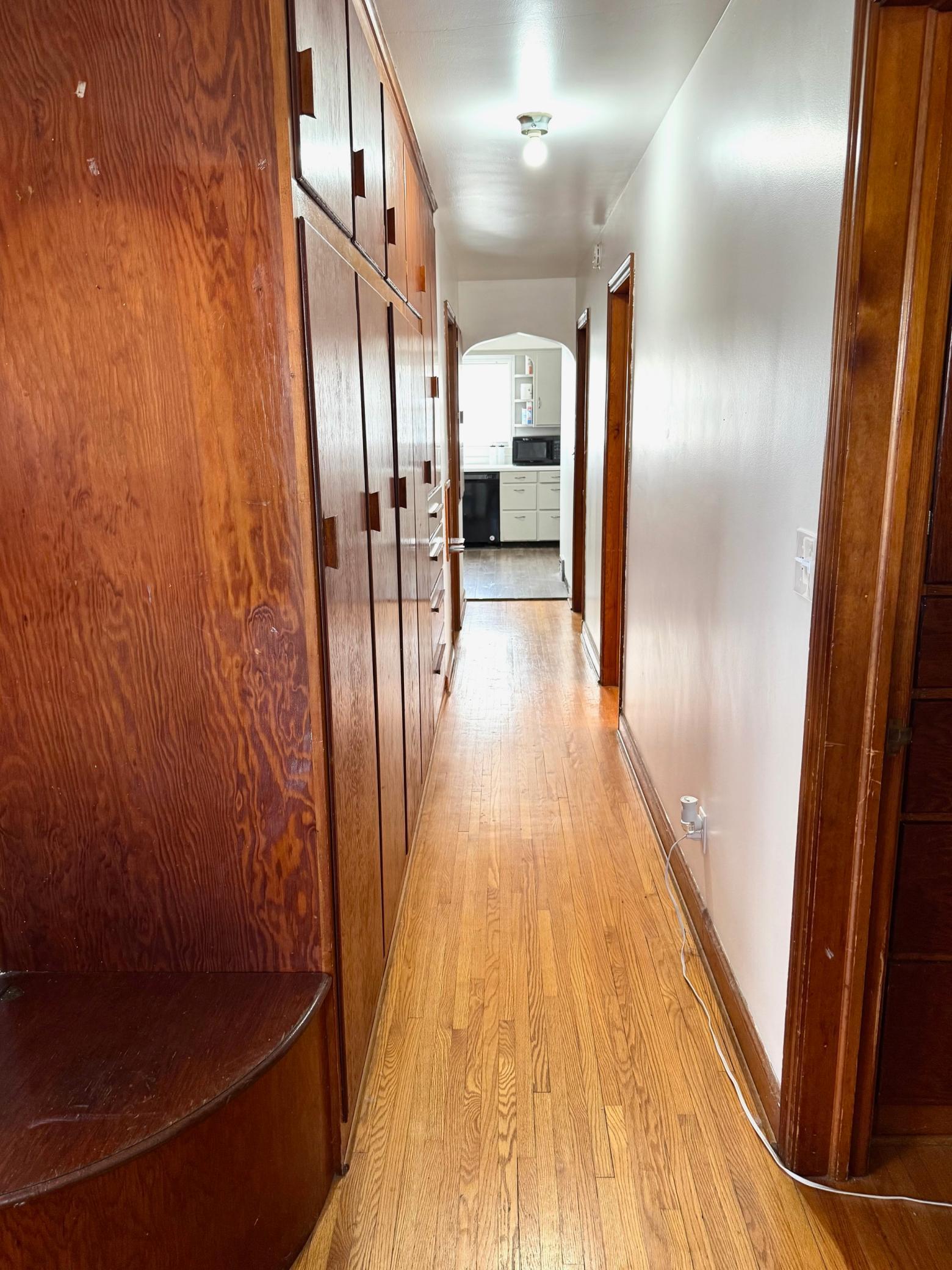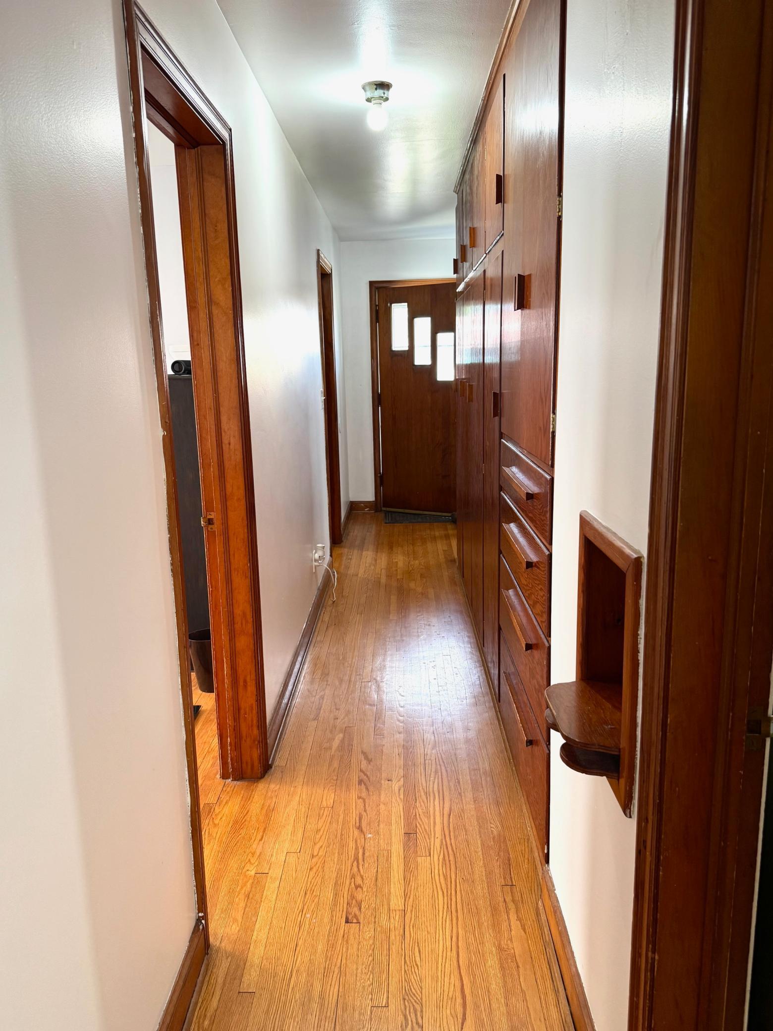You'll love this solid 3 bedroom, 1 bath home across from the Roseau School! This home features an abundance of character with original hard-wood floors throughout the bedrooms and living room, newer flooring in the kitchen, newer bathroom vanity, newer shingles, and an abundance of storage with several built-in closets and nooks.